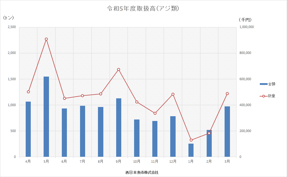 令和5年度アジ類取扱高推移
